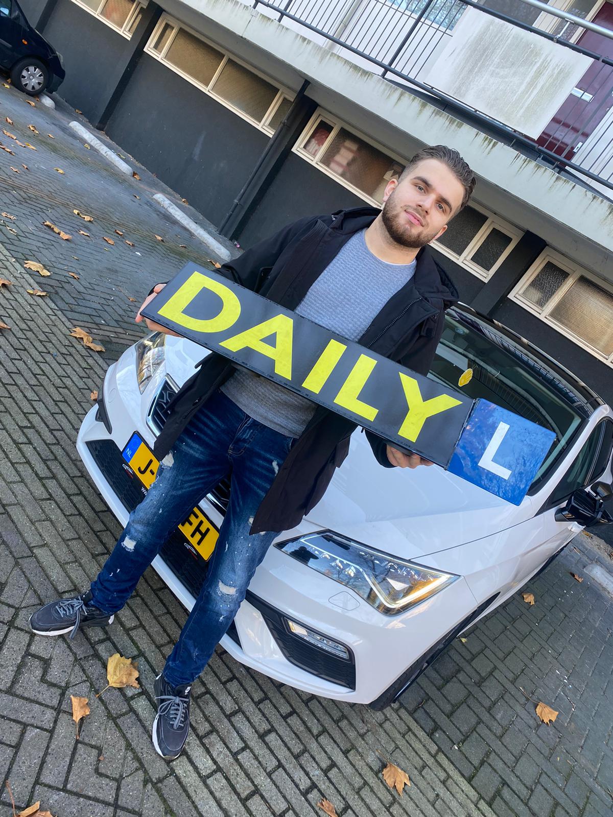 ” Ik heb, op mijn 17e, binnen 3 maanden mijn rijbewijs gehaald met dank aan rijschool Daily. Dit terwijl ik hiervoor nog nooit auto heb gereden. Dit heb ik allemaal te danken aan mijn instructeur die mij iedere les heeft voorzien van goede feedback. De lessen waren leuk en leerzaam. Top sfeer en nooit saai! Zeker een aanrader! Ik zeg twijfel niet, just do it! ”